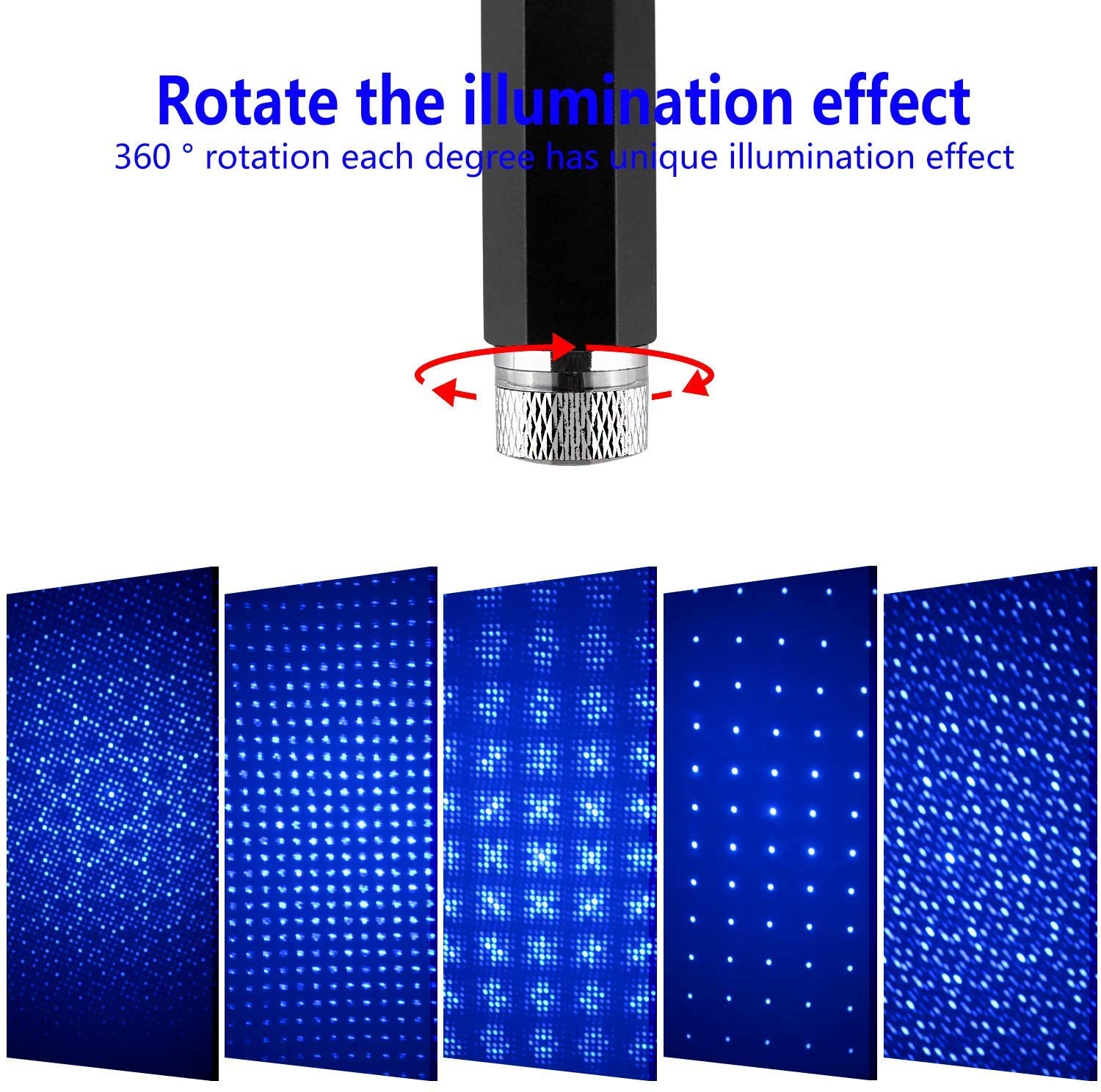 • 【Bending Freely】: USB interface with 360 degree flexible body which can be bent to whatever angle you set it to point towards.Create a romantic starry atmosphere in your car, bedroom or party, bring you a fantastic visual feast.